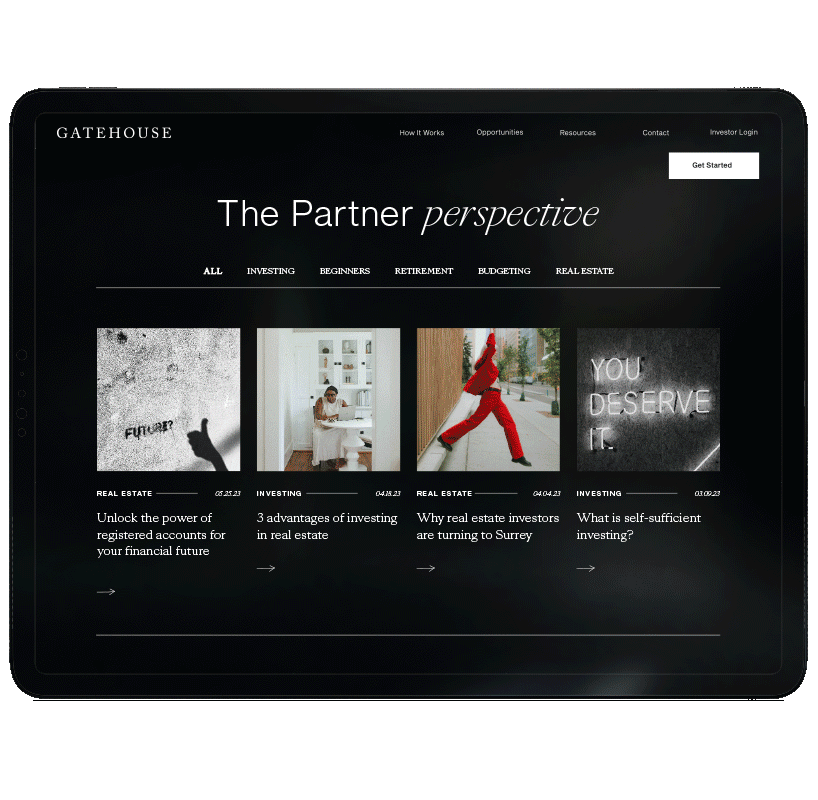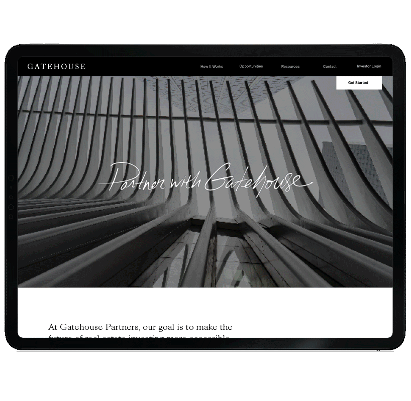 Gatehouse Partners makes it easy to invest in the real estate development projects of their sister company Gatehouse Design + Developments. The goal for Gatehouse Partners was to create a brand that conveyed a clear statement of quality, credibility, and the strength to forge consumers’ paths into a transitioning new crowdsourcing real estate investing environment in Canada.
