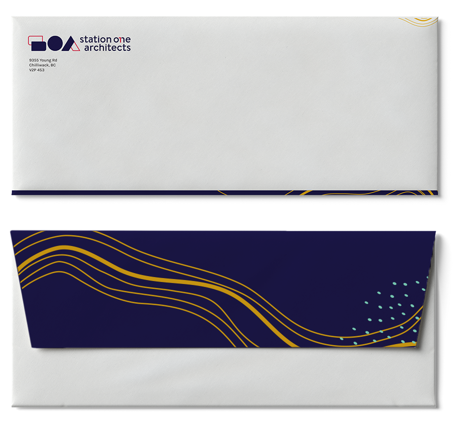 The contrast of the fluid, textural contours through the rest of the brand elements offset the structural aspects of the logo, and speak to the more creative artistic side, as well as the life within the buildings we design and build.